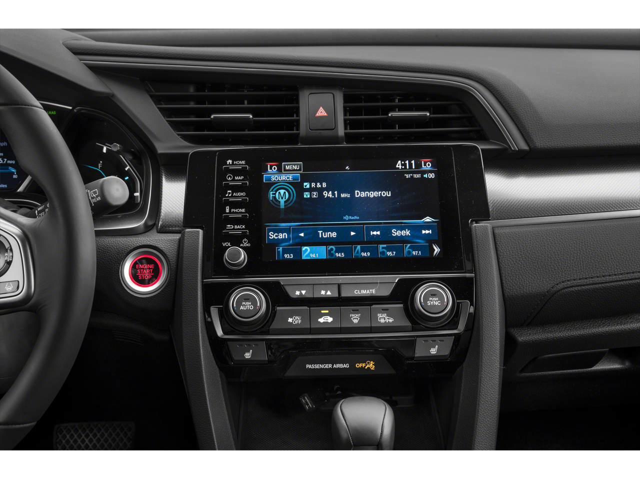 - Radio: 180-Watt HD Audio System w/Navigation -inc: 8 speakers, 7-inch display w/high-resolution electrostatic touch-screen, knob and hard keys for primary controls and customizable feature settings, Honda Satellite-Linked Navigation System w/voice recognition and Honda HD digital traffic, Bluetooth® HandsFreeLink, Bluetooth® streaming audio, Radio Data System (RDS), speed-sensitive volume compensation (SVC), 1.5-amp USB smartphone/audio interface port in front console, 1.0-amp USB audio interface port in center console, HondaLink, Apple CarPlay integration, Android Auto integration, SiriusXM radio, SMS text message function, illuminated steering wheel-mounted audio and navigation controls and fin-type roof-mounted antenna