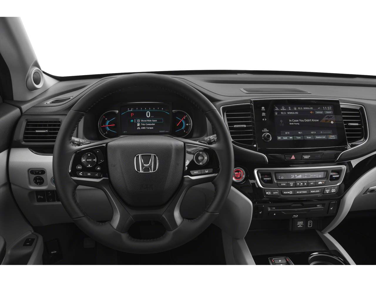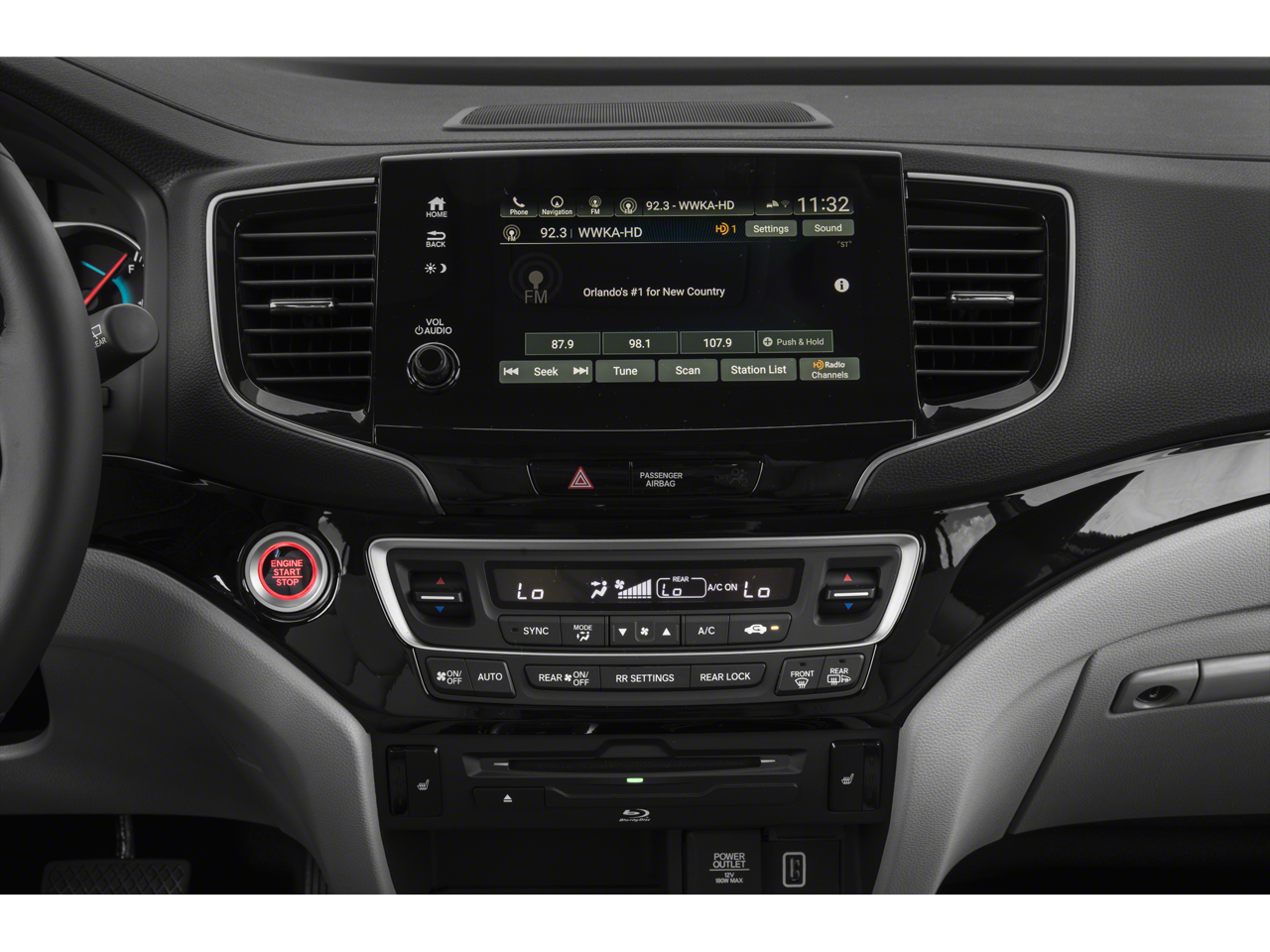 - Radio: AM/FM Premium Audio System -inc: 590-watts, 10 speakers including subwoofer, Bluetooth® HandsFreeLink, Bluetooth® streaming audio, MP3/auxiliary input jack, Radio Data System (RDS), Speed-Sensitive Volume Compensation (SVC), USB smartphone/USB audio interface w/2.5-amp port in front console, USB charging port w/2.5-amp port in center console and 2nd-row (2 ports), 8" display audio w/high-resolution electrostatic touch-screen and customizable feature settings, HondaLink, CabinControl remote compatibility, Apple CarPlay integration, Android Auto integration, SMS text message function, SiriusXM radio, HD Radio, Honda Satellite-Linked Navigation System w/voice recognition, Honda HD Digital Traffic 2nd-row HDMI interface and multi-zone audio