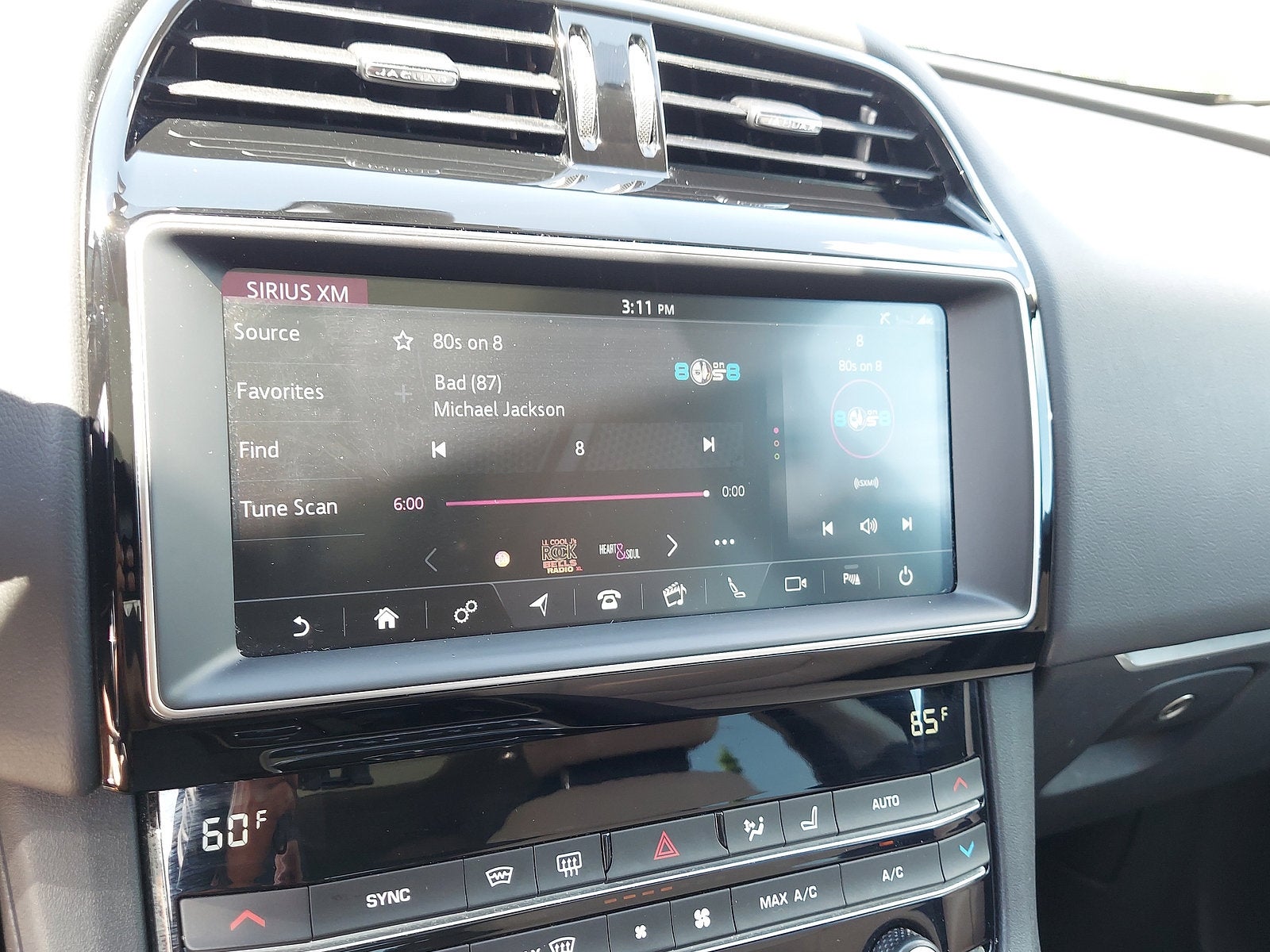 - Radio: Meridian 380W Sound System -inc: HD Radio, InControl Remote (including remote climate control, lock and unlock and beep and flash), InControl Protect (including SOS emergency call, Jaguar optimized assistance call and stolen vehicle locator), analog dials w/central 5" TFT display, USB, 12V socket in center console additional power sockets (auxiliary power socket x2), dynamic volume control, Bluetooth® connectivity and streaming, ECO driving style assistant, 10" touchscreen, Apple CarPlay and Android Auto