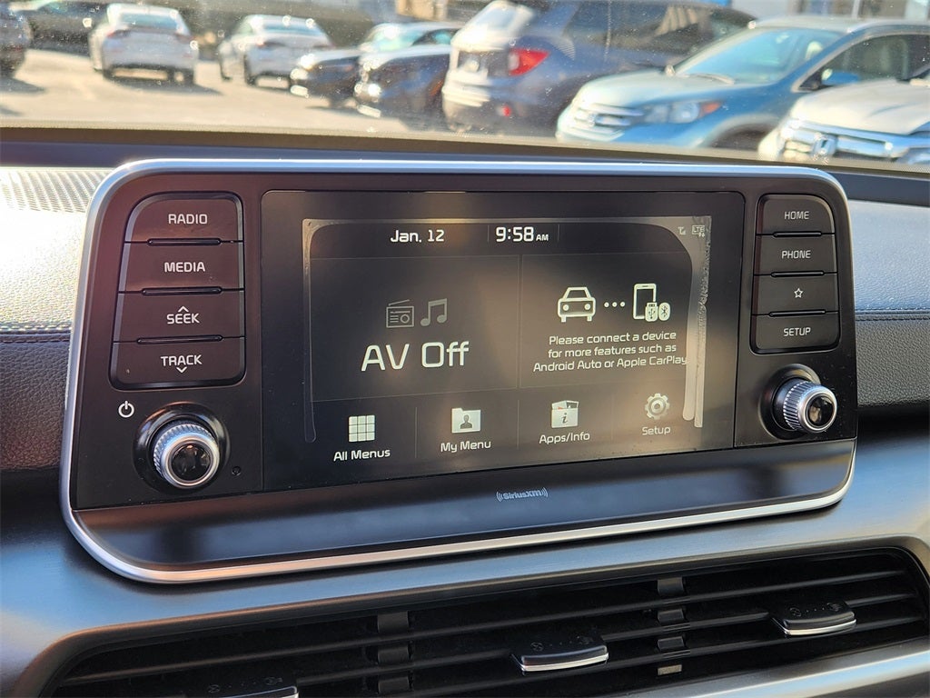 - Radio: AM/FM/MP3/SiriusXM Audio System -inc: UVO link infotainment system, w/smartphone integration for remote commands and remote vehicle status, 6-speaker, support for Android Auto and Apple CarPlay, 8" touch-screen color display, a total of 5 USB charge ports in all rows and Bluetooth® wireless connectivity w/voice recognition (a Bluetooth® enabled cell phone is required to use Bluetooth® wireless technology), Note: Remote's climate feature is not available on LX and S trim levels due to manual HVAC system