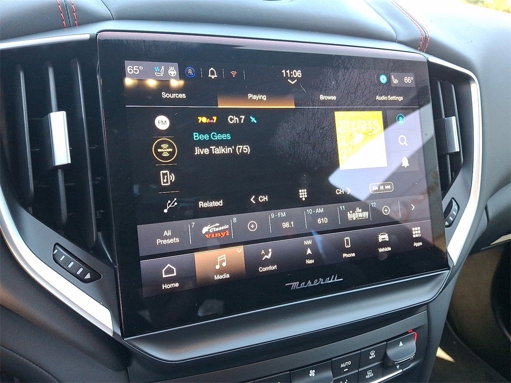 - Radio: AM/FM w/Maserati Intelligent Assistant -inc: 10.1" touchscreen display, navigation, HD Radio, SiriusXM satellite radio (1-year trial subscription), SD card reader, USB, aux-in, Apple CarPlay and Android Auto capable, Bluetooth® functionality, climate controls, OTA updates, Alexa in-vehicle voice assistant, eCall and bCall, remote diagnostics control, navigation services and App store