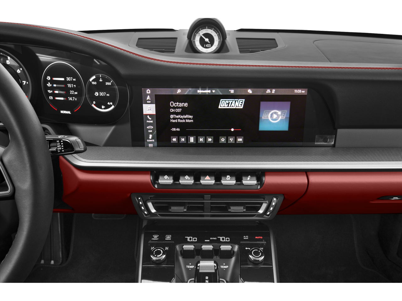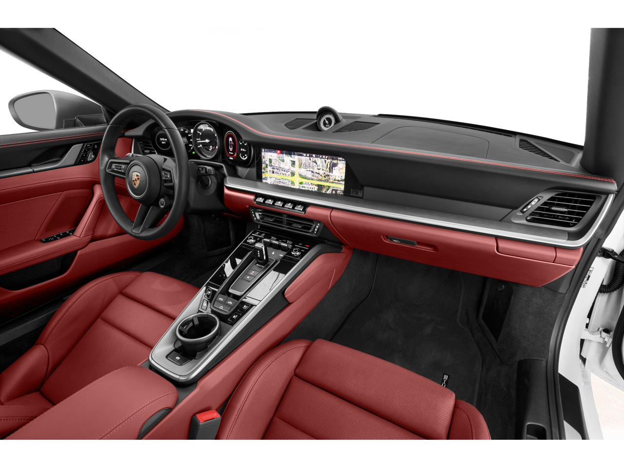 - Radio: Porsche Communication Management (PCM) -inc: online navigation module, Connect Plus (wireless Apple CarPlay and wired Android Auto, LTE communication module, wireless internet access and numerous Porsche Connect Services), SiriusXM w/360L (3-month trial), integration of Apple Music and Apple Podcasts, voice pilot w/natural language understanding and activation via Hey Porsche, navigation plus w/real time traffic information and online map update and sound package plus (analog sound system, 8 loudspeakers, 150-watt total output w/integral amplifier and digital signal processing)