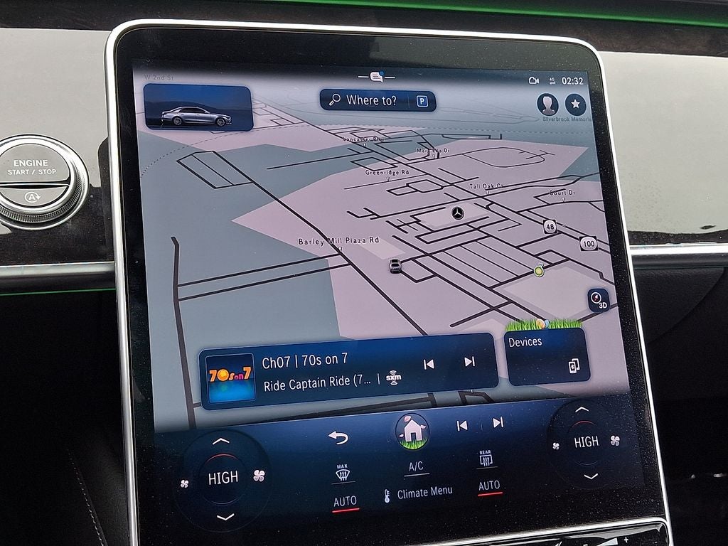 - Radio: MBUX w/Navigation -inc: 12.8" OLED touch screen, Hey Mercedes voice control, augmented video for navigation, wireless front charging, wireless smartphone integration (Apple CarPlay, Android Auto) and online music streaming