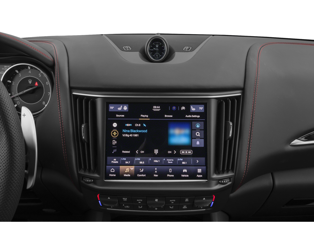 - Radio: AM/FM w/Maserati Intelligent Assistant -inc: 8.4" touchscreen display, navigation, HD radio, SiriusXM satellite radio w/1-year trial subscription, USB, aux-in, Apple CarPlay and Android Auto capable, Bluetooth® functionality, climate controls, OTA updates, Alexa in-vehicle voice assistant, eCall and bCall, remote diagnostics control and app store